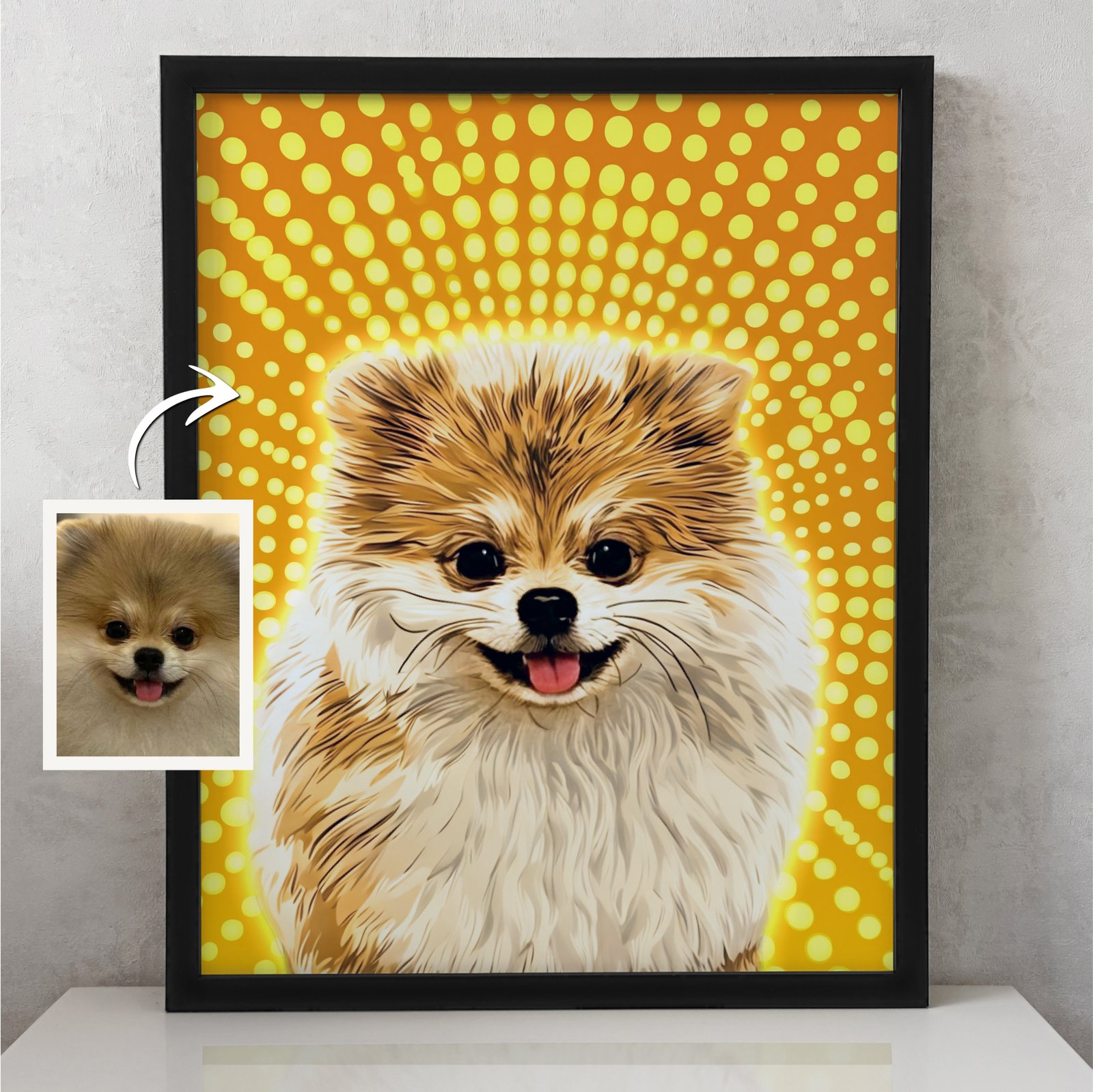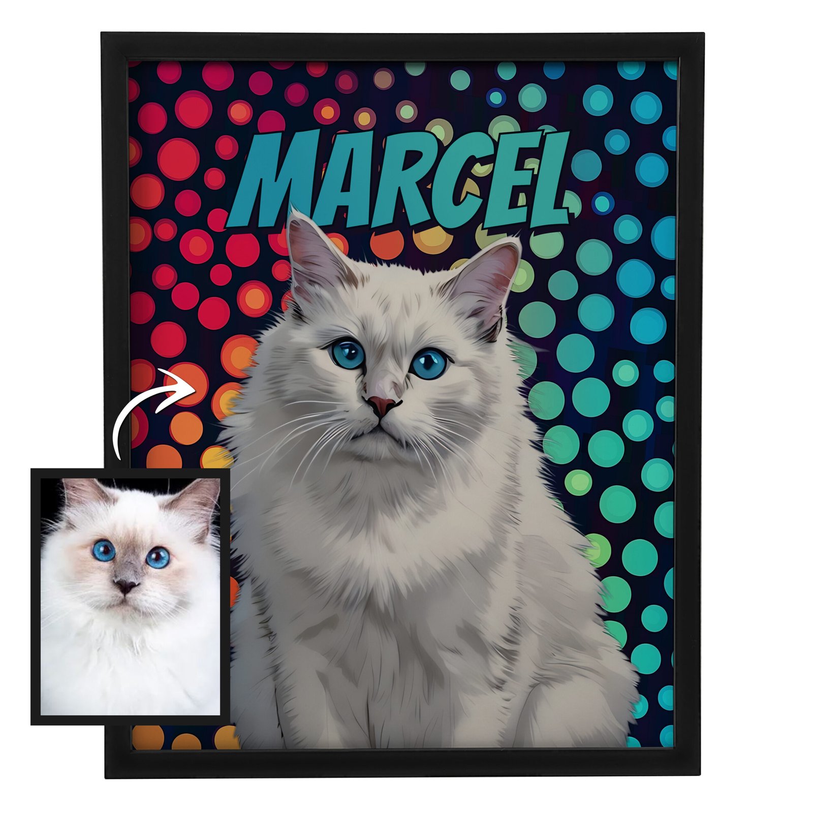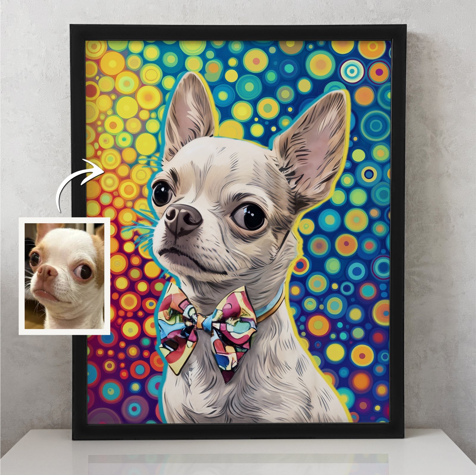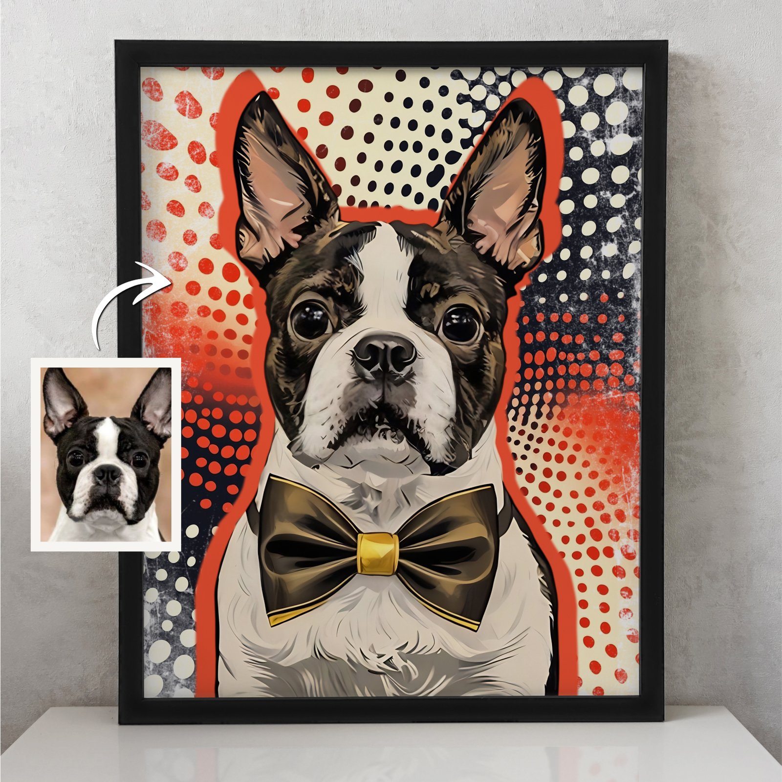 Hanki upea, personoitu lemmikkimuotokuva suoraan digitaalisena tiedostona! Pop art -tyyli, räätälöidyt yksityiskohdat ja nopea toimitus sähköpostitse. Tilaa heti!
