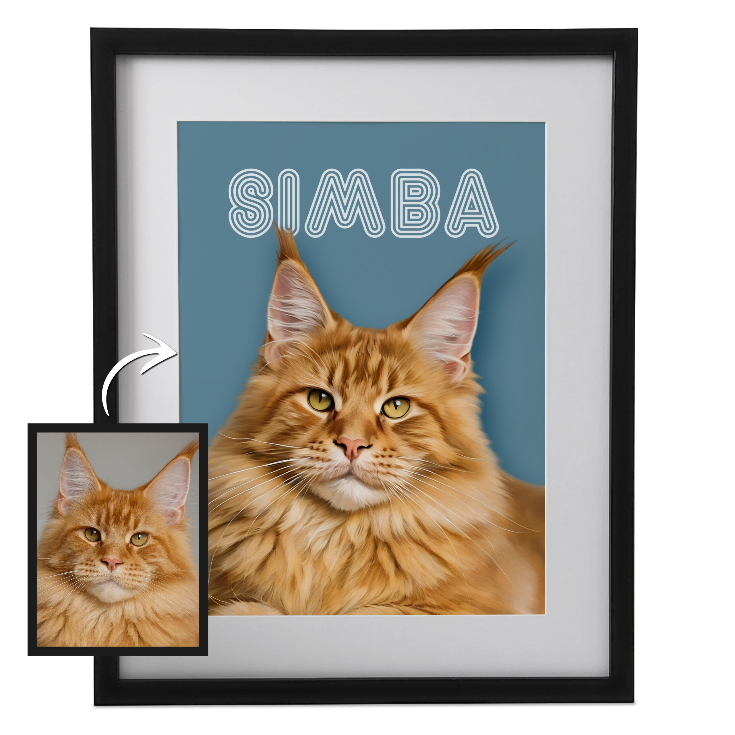 - Määritä lemmikin nimi – siitä tulee osa suunnittelua. Valitse fontti. Jos haluat muotokuvan ilman lemmikin nimeä, jätä kenttä tyhjäksi.