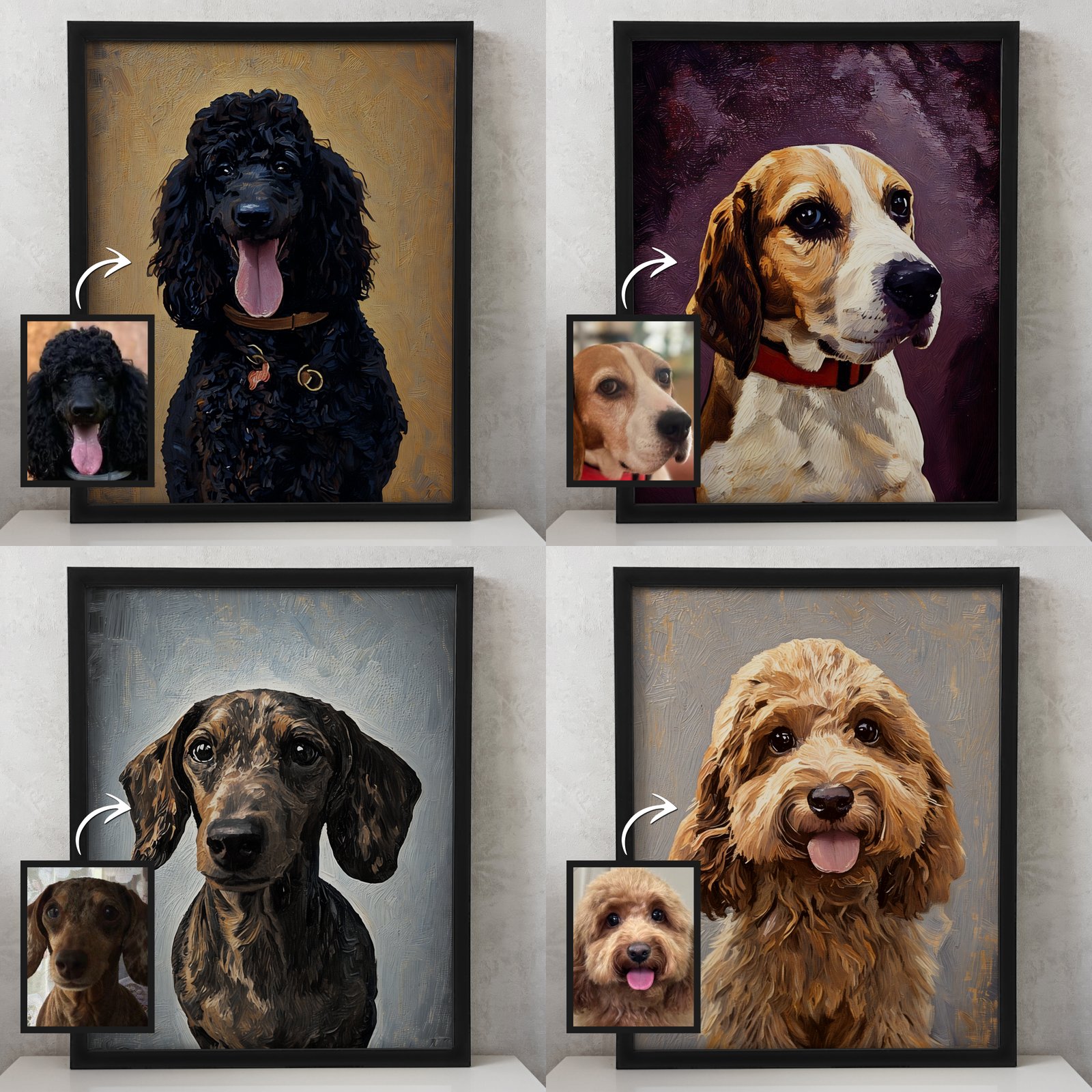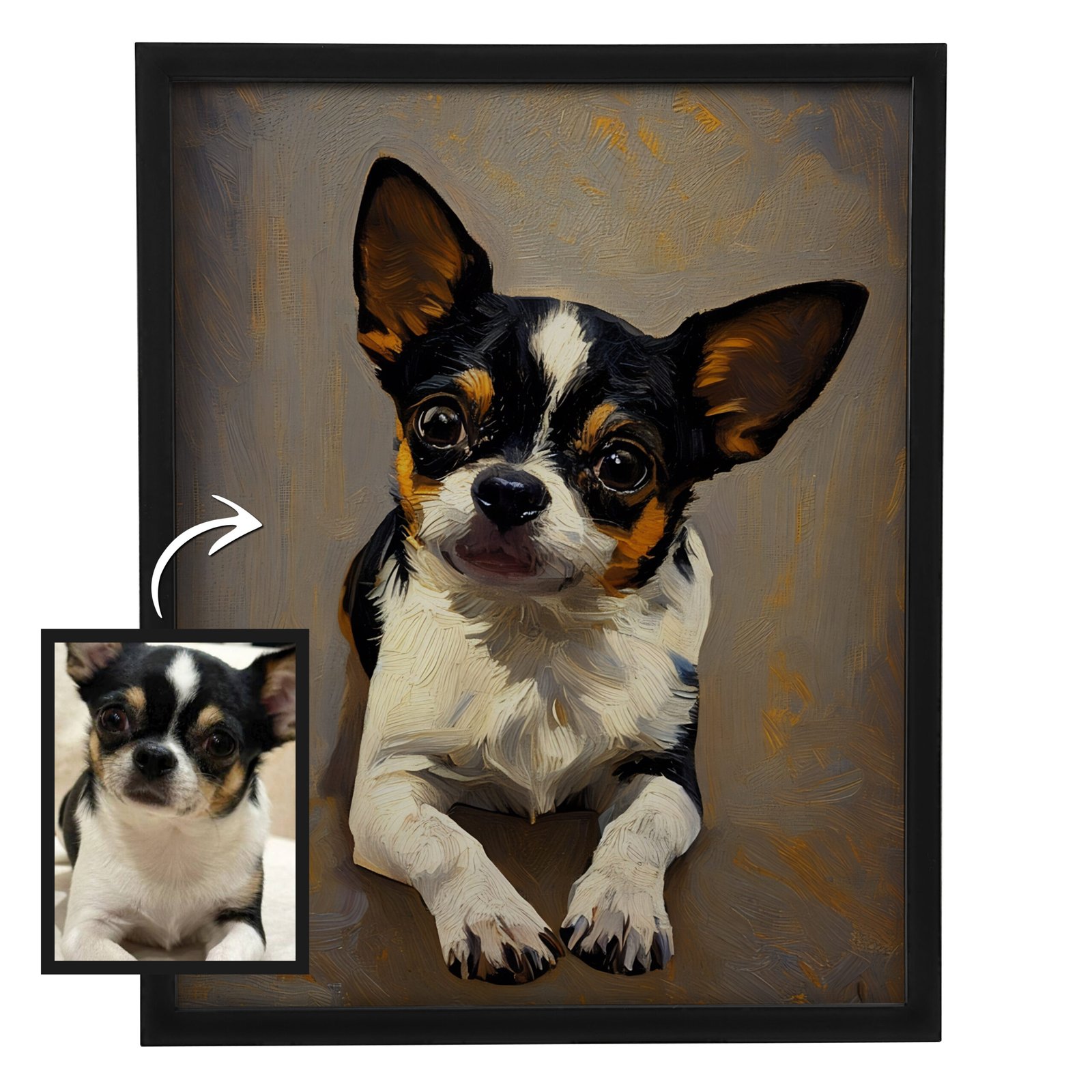 Muunna koirakuvasi kauniiksi, henkilökohtaiseksi maalaustyyliseksi muotokuvaksi!