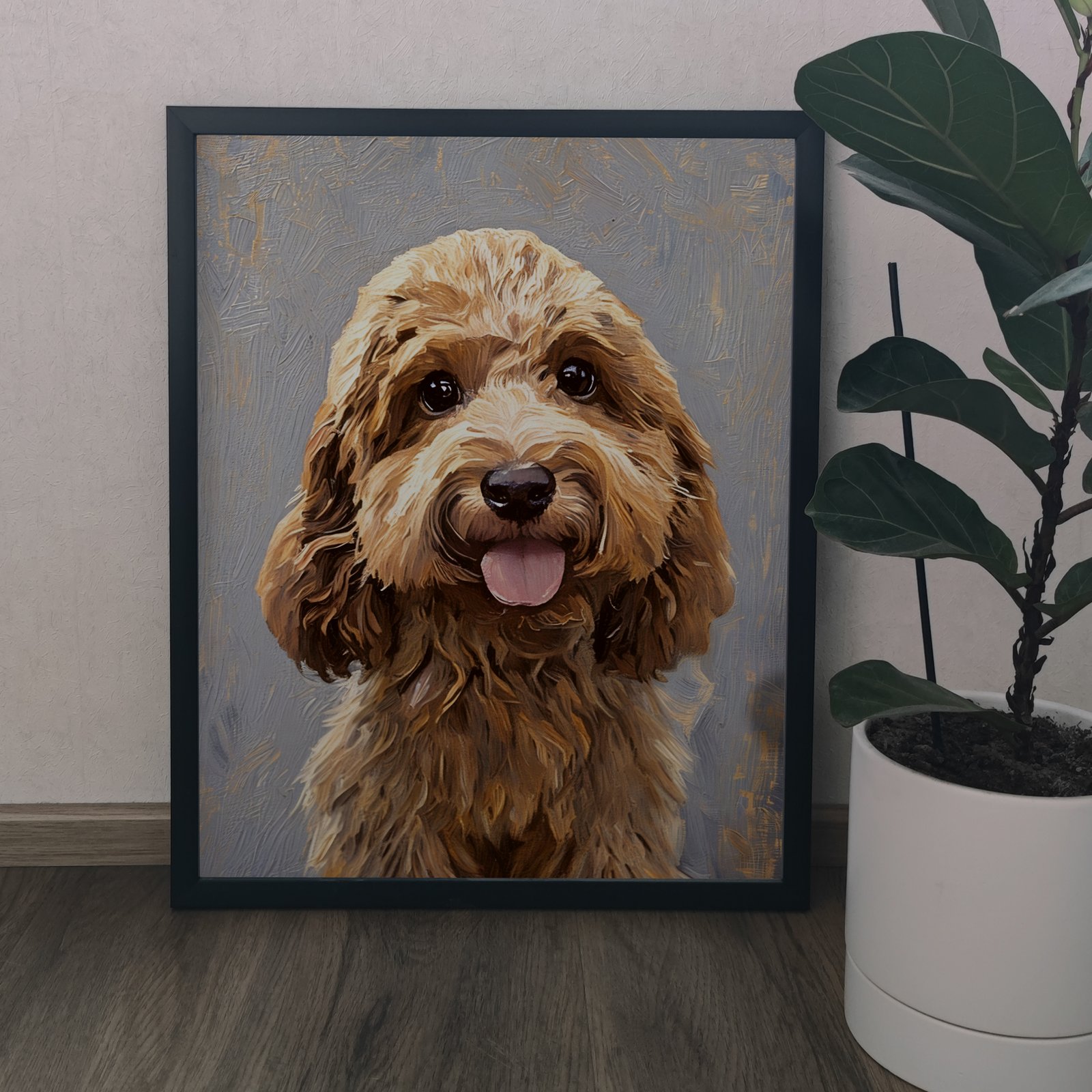 Ainutlaatuinen maalaustyylinen koirataide: Lemmikkikuvasi muutetaan asiantuntevasti kauniiksi muotokuvaksi.