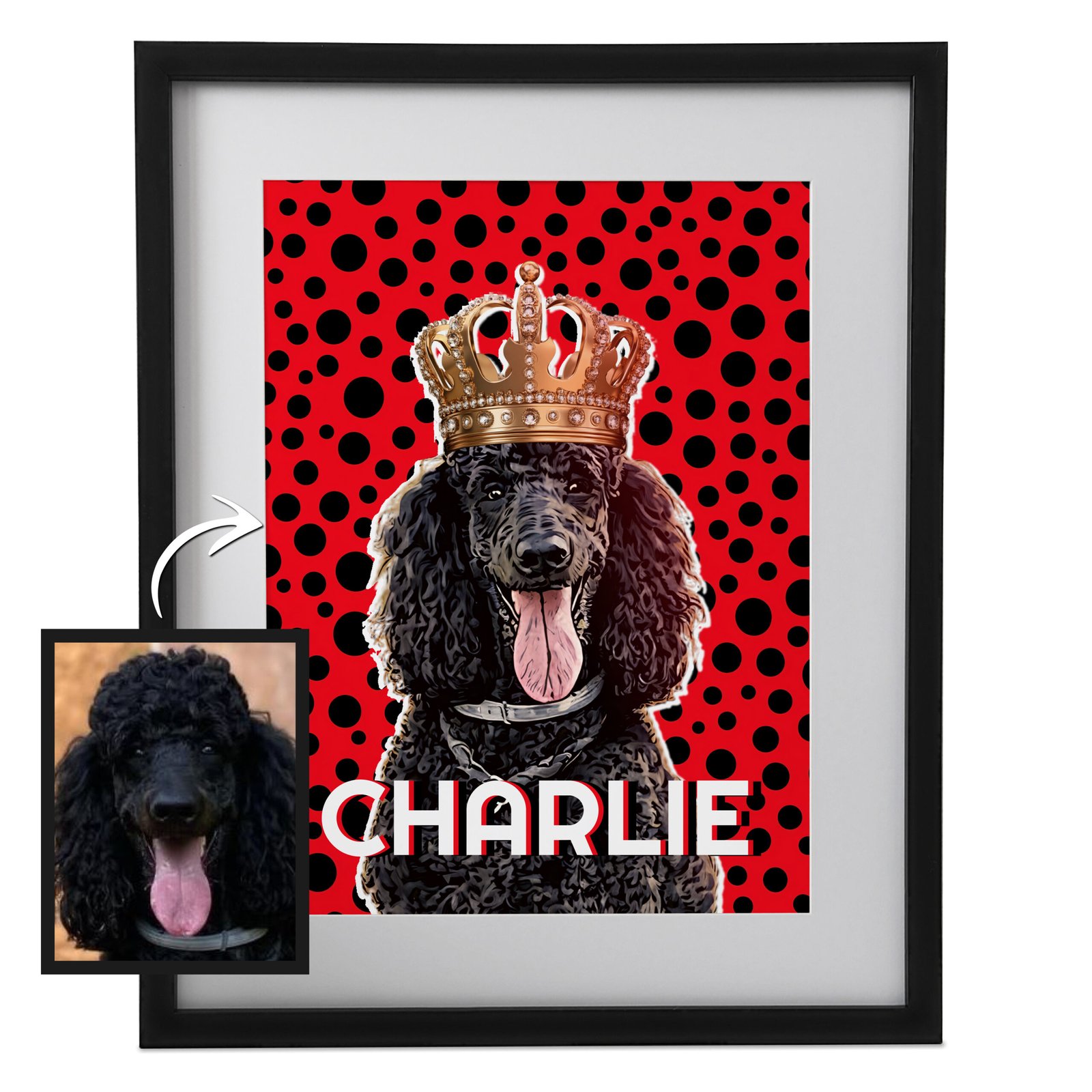 Koirajuliste Pop Art -tyylillä kuninkaallisen | Hauska lemmikki taide valokuvasta, Piste (TULOSTETTU MUOTOKUVA KEHYSTETTU)