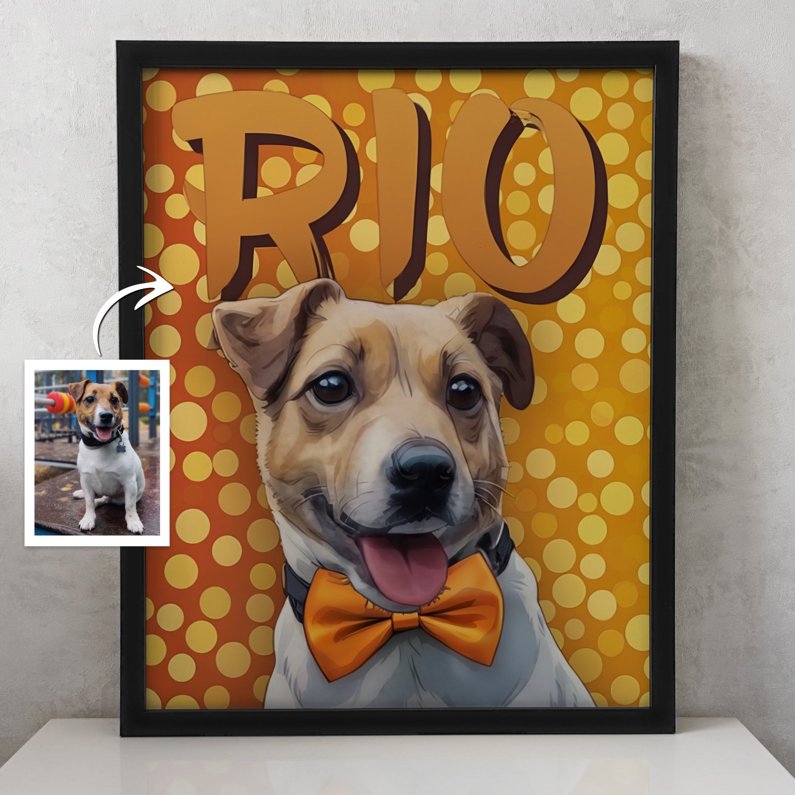 Koirajuliste Pop Art -tyyli Räätälöity lemmikkimuotokuva Viiva (TULOSTETTU MUOTOKUVA KEHYSTETTU)